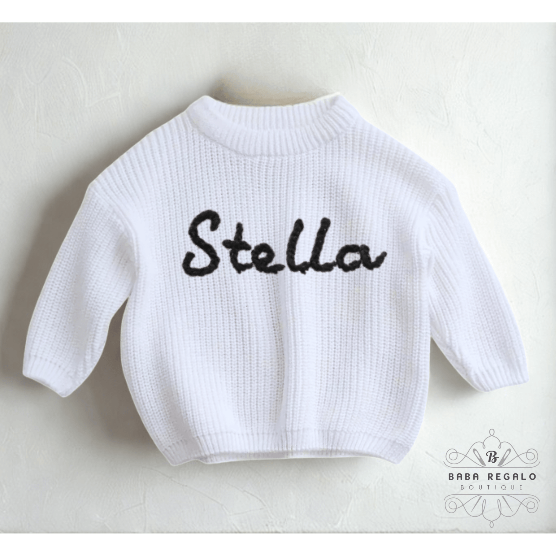 Custom Name Plain Jersey-Wrap your little one in cozy charm with this Handmade Custom Baby Sweater! Crafted from soft, breathable yarn in a chunky knit, each sweater is personalized with hand-embroidered text—be it a name, nickname, or a special word just for your baby. Perfect for snuggly photo shoots, milestone moments, or as a keepsake gift, this sweater is made with baby-safe materials and lots of love. Choose from multiple sizes and colors, and get ready for a delightful surprise in just 4–6 weeks!